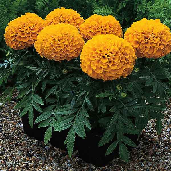 جعفری گیاهی، افراشته و سریعالرشد است و محلهای گرم و آفتابی را میپسندد. این گل بهعنوان گل شاخه بریده، گلدانی و همچنین در حاشیه کاری استفاده میشود. گلهای آن در رنگهای زرد و طیفهای مختلف نارنجی در تابستان ظاهر میشوند. برگ آن دارای برگهای سبز تیره براق و معطر و دارای بریدگیهای عمیق هستند، بوی خوبی ندارند و امروزه در نژادی از این گل گزینش برای رقمهایی صورت میگیرد که برگهای آنها بو نداشته باشد.
