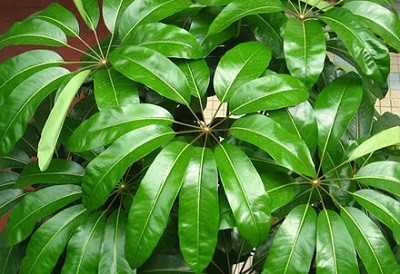 شفلرا اکتینوفیلا از مشهورترین انواع شفلرا بوده و دارای برگهای لوزی شکل میباشد.